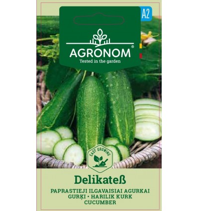Delikatess er en klassisk og meget populær agurkesort, kendt for sine sprøde, velsmagende frugter og stabile udbytte. Sorten danner ensartede, cylindriske agurker med tynd grøn skal og små knopper. Kødet er saftigt og helt uden bitterhed.