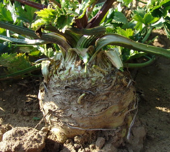 Knoldselleri. Sprød og lækker at spise, de store, hvide rødder har en vidunderlig pikant smag.