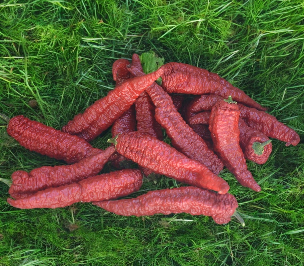 Tag styringen med Leviathan C. Chinense – en ægte kæmpe inden for de super-stærke chili-sorter. Denne imponerende chili producerer store, knudrede og rynkede frugter med en intens, skarp rød farve, der vidner om den ekstreme varme, de indeholder. Leviathan C. Chinense er kendt for sin eksplosive styrke og komplekse smagsprofil med et strejf af frugtighed før den brændende varme overtager. Perfekt til dem, der elsker intens varme i deres chili-saucer, krydrede retter og fermenterede hot sauces. For de modige chilielskere er dette en oplevelse, der ikke må gå glip af!