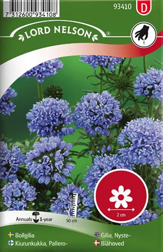 Beskrivelse: Denne søde blomst, som er glimrende i bede og til snit, kommer oprindelig fra Californien. Planten har en lodret voksemåde med spædt løv og 1-2 cm brede, lyse, lavendelblå blomsterkugler. Kan også sås om efteråret for tidlig blomstring næste år. Bør så vinterdækkes. Trives bedst i veldrænet og velgødet jord, på et solrigt og beskyttet sted.