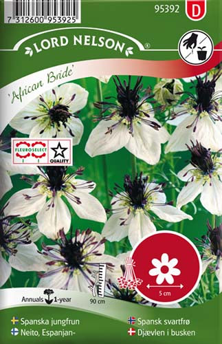 Beskrivelse: Med et sirligt løv og hvide blomster med mørke støvdragere og frøkapsler er denne blomst sød og dramatisk på samme tid. Velegnet til bede og buketter. Frøkapslerne er meget dekorative og anvendelige i tørret tilstand. Trives i næringsrig og veldrænet jord.