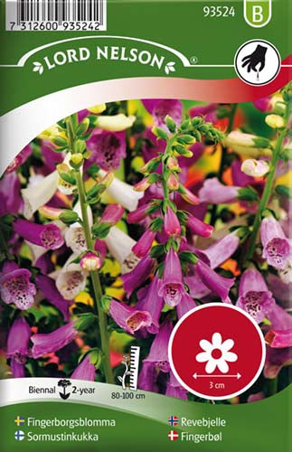 Beskrivelse: Stor og pragtfuld, velkendt have- og lægeplante. Blomsterne sidder langs stilkens øvre del. Blandingen indeholder rosa og gullighvide farvetoner, hvor blomsterne kan være mere eller mindre tofarvede. Letdyrket, toårig plante, der som regel bliver ”flerårig” i haven, fordi den frøsår sig selv. Også smuk som snitblomst. Lad ikke børn lege med planten, eftersom den er giftig ved indtagelse. Trives i de fleste jordtyper, tåler både en del tørke og lidt skygge. Blomstrer året efter såning.