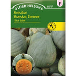 Beskrivelse: Meget fine græskar med blågrøn skal. Frugterne vejer ca. 1,5 kg. Bevar 2-3 frugter per plante. Høstes når de er helt modne. Fast, orangefarvet kød med sød smag. Kan anvendes til tærter mv. Også til pynt. Velegnet til opbevaring, kan gemmes helt til næste sommer. Trives i velgødet, veldrænet jord et varmt, beskyttet sted. Kræver meget vand og gødning.