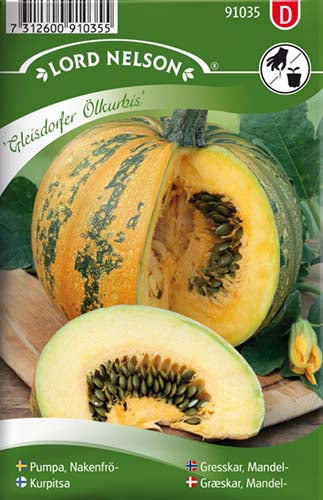 Meget fine, runde græskar på ca. 2-3 kg. Gule med dekorative grønne striber. Speciel sort hvor frøene anvendes til olieudvinding. Også til pynt. De tørrede frø er lækre som snacks. Trives i velgødet, veldrænet jord et varmt, beskyttet sted. Kræver meget vand og gødning i hele vækstperioden. Meget kraftigt voksende, kræver god plads.
