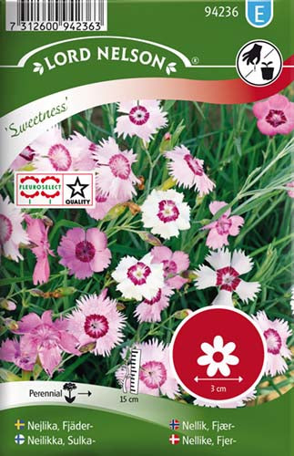 Beskrivelse: En herlig blanding af skønt duftende fjernelliker i forskellige nuancer af rosa, rødt og cerise med islæt af hvidt. Blomsterne er frynsede som fjer, enkle og med eller uden markeret øje. Fjernellike kan dyrkes og trives på veldrænede og varme steder.