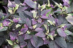 Denne plante er super smuk og dekorativ, med dens lilla brogede blade. Den sætter små runde sort-røde frugter med en aroma af hyldebær. Styrken kan variere en del. Planten bliver ca. 30 cm. høj og er velegnet til dyrkning i krukker på et lunt sted på terrassen. Styrke 4-5. 1 stk. plante