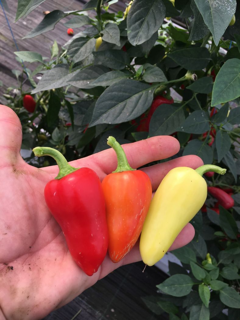 Disse chilifrugter bliver ca 8cm lange og 4 cm “brede” er en rimelig mild chili som starter ud med at være gul/lysegrøn og skifter til orange som moden frugt. ca 60 cm høj plante som er rigt bærende over hele sæsonen – er resistent overfor tobaksmosaik virus. 1 stk. plante.