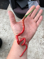 En ret sjov chili. Den stammer angiveligt fra den sydvestlige del af provinsen Guizhou i Kina. I dalene omkring bjerget Thunder Mountain dyrkes disse lange røde chili - hvorefter de soltørres og røges - det giver et helt specielt lækkert krydderi, som blot drysses over retterne. Med en styrke på ca 30.000 SHU er den meget anvendelig som all-round chili krydderi. Planten bliver op til 120 cm høj og er ret produktiv.
