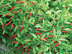 Stor flot plante med mini Thai style frugter, der modner fra grøn til ildrød. En af de højest ydende Thai chilier. Styrke 5. Frugterne bliver ca 1,2 x 4,5 cm minimum 10 frø
