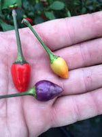 Peppa Purple Tangerine - C. annuum er en super smuk sort. Frugterne modner fra en smuk lilla til en flammende orange farve, og senere rød. Den er super smuk med sine mange farver, og velegnet til dyrkning i krukker.