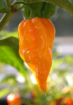 En super stærk chili der stammer fra det centrale Afrika. Denne får større frugter end den almindelige gule, smagen er meget aromatisk og frugtagtig - inden den ekstreme styrke sætter ind. Store flotte planter med masser af flotte orange frugter. minimum 10 frø