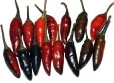 En chilli der stammer fra Assam i Indien, den hedder Krishna Jolokia pga. dens næsten sorte farve (Krishna betyder sort). Den har en unik smag, er mellemstærk - 6-7 og bliver brugt dagligt i den Indiske cuisine. Minimum 8 frø