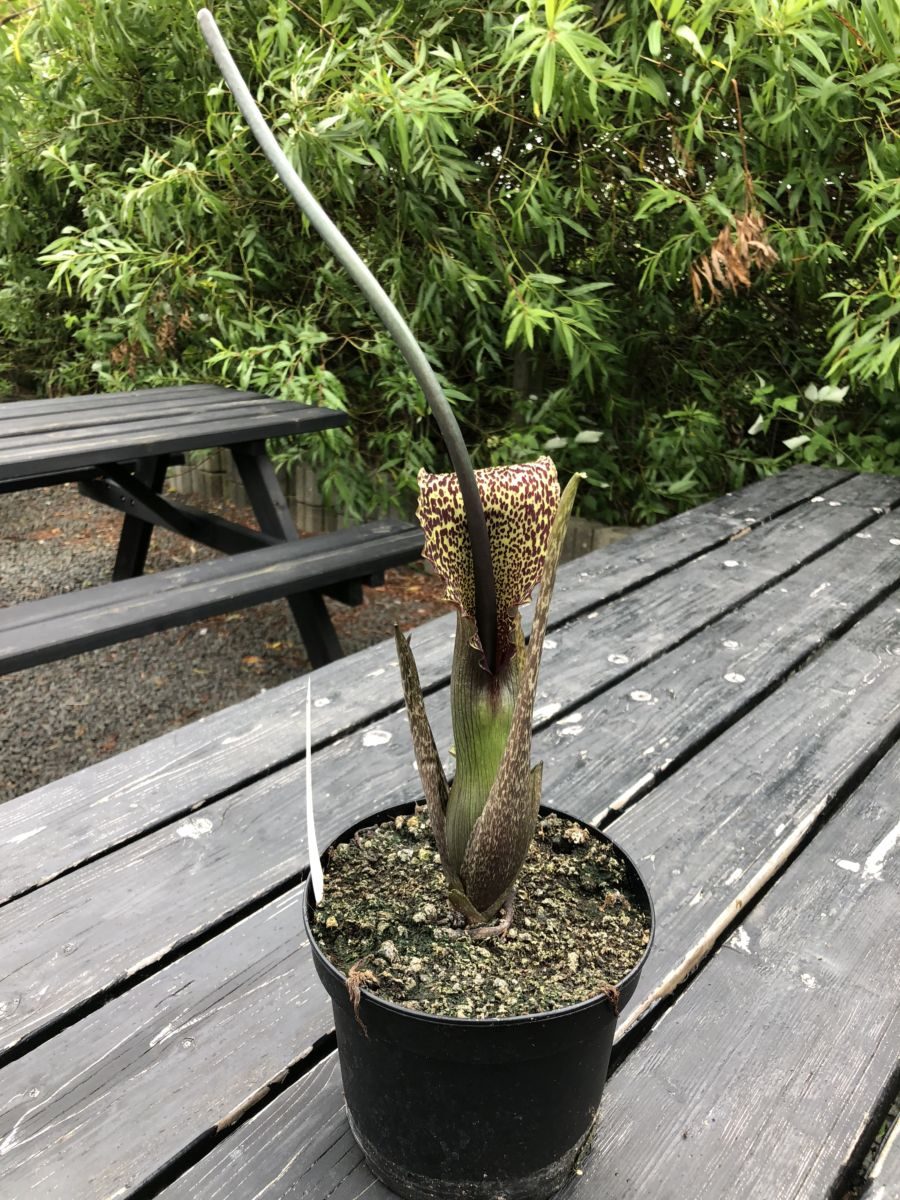 Planten er speciel, da den kan blomstre direkte fra knolden altså uden jord og vand. Den kan anbringes i en vindueskarm eller på et bord, og inden der er gået 14 dage, kommer blomsten til syne som en opadsnoet slange, der er vinrød med gule pletter. Den smalle blomsterkolbe er omgivet af et stort hylsterblad, der består af en op til 30-40 cm lang, smal tilspidset, bag­udbøjet, purpurfarvet pladedel; der er et meget langt, smalt, cylinder­formet, goldt stykke i spidsen af kol­ben. Blomsten udsender en gennemtrængende, ubehagelig duft og er ikke rar at have i stuen.