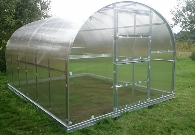 KLASIKA drivhuse leveres med 10 cm høj stålsokkel Der er monteret forstækning på hver anden bue