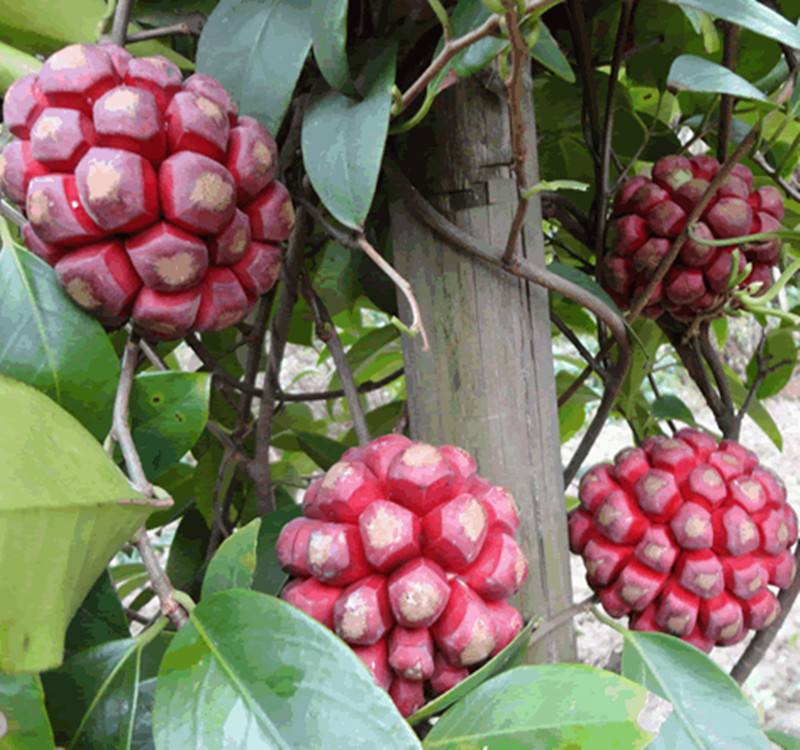 Stammer fra store dele af Asien. Kadsura coccinea er en stedsegrønne klatreplante med træagtige stilke. Planten høstes fra naturen og bruges lokalt som mad og medicin. Den foretrækker at vokse i halvskygge. Den sætter store flotte rød violette frugter på op til 10 cm i diameter.