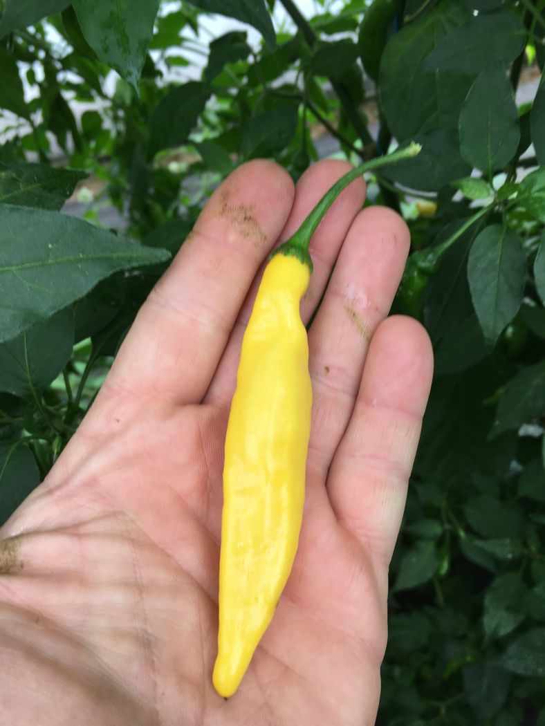 En lækker peruviansk chilli som er stærk og frugtagtig med en underliggende smag af ananas. Aji Pineapple er en nær slægtning til Aji Lemon/Hot Lemon. Frugterne bliver klart gule når de er modne.