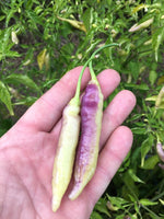 En Spændende og anderledes frugt. Frugterne er 6 cm lange, lys grønne og modner til det hvid-gule med lilla stafferinger. Aromaen er meget frugtig med en god efterbrænder.