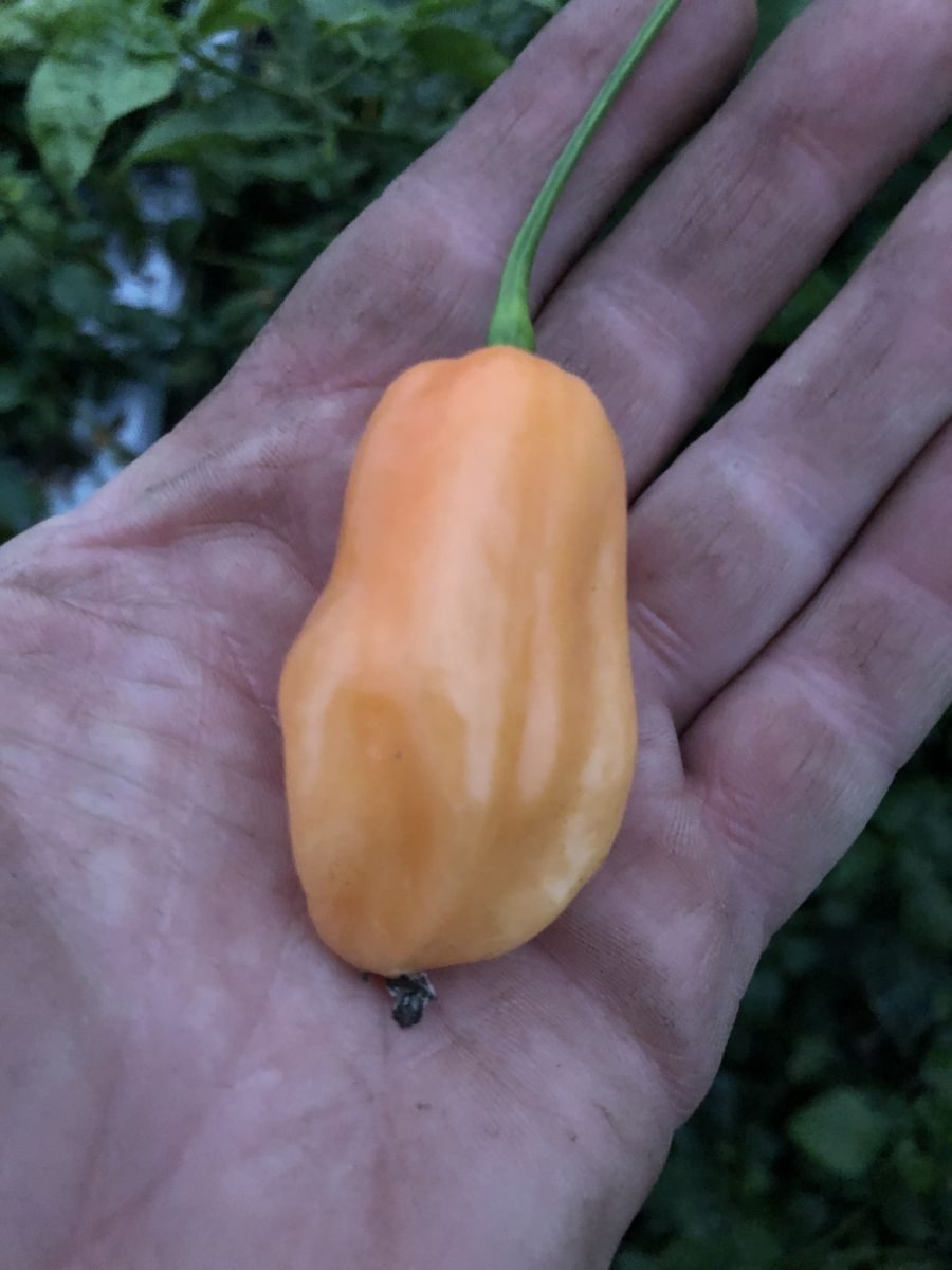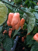 En chili der stammer fra Brazilien. Den hører til i familien af Habanero, men den er ikke så stærk som en Jalapeno. Til gengæld har de smukke orange/laksefarvede frugter den mest fantastisk smag og aroma. Den er nok min allerstørste favorit i 2011 i af de milde, sammen med Habanero Dulce. Prøv den – du bliver helt vild med den. Heldigvis sætter den MASSER af frugter på planten der ikke bliver mere end ca 70 cm høj.Styrke 2.