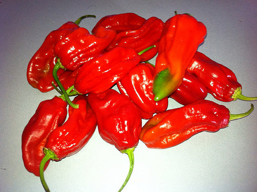 Habalokia er en krydsning mellem Habanero og Bhut Jolokia - de har en god frugtagtig smag, og er stærke. De er forholdsvis nye og regnes ikke for 100% stabile. Flotte planter med masser af frugter. 5 friske frugter