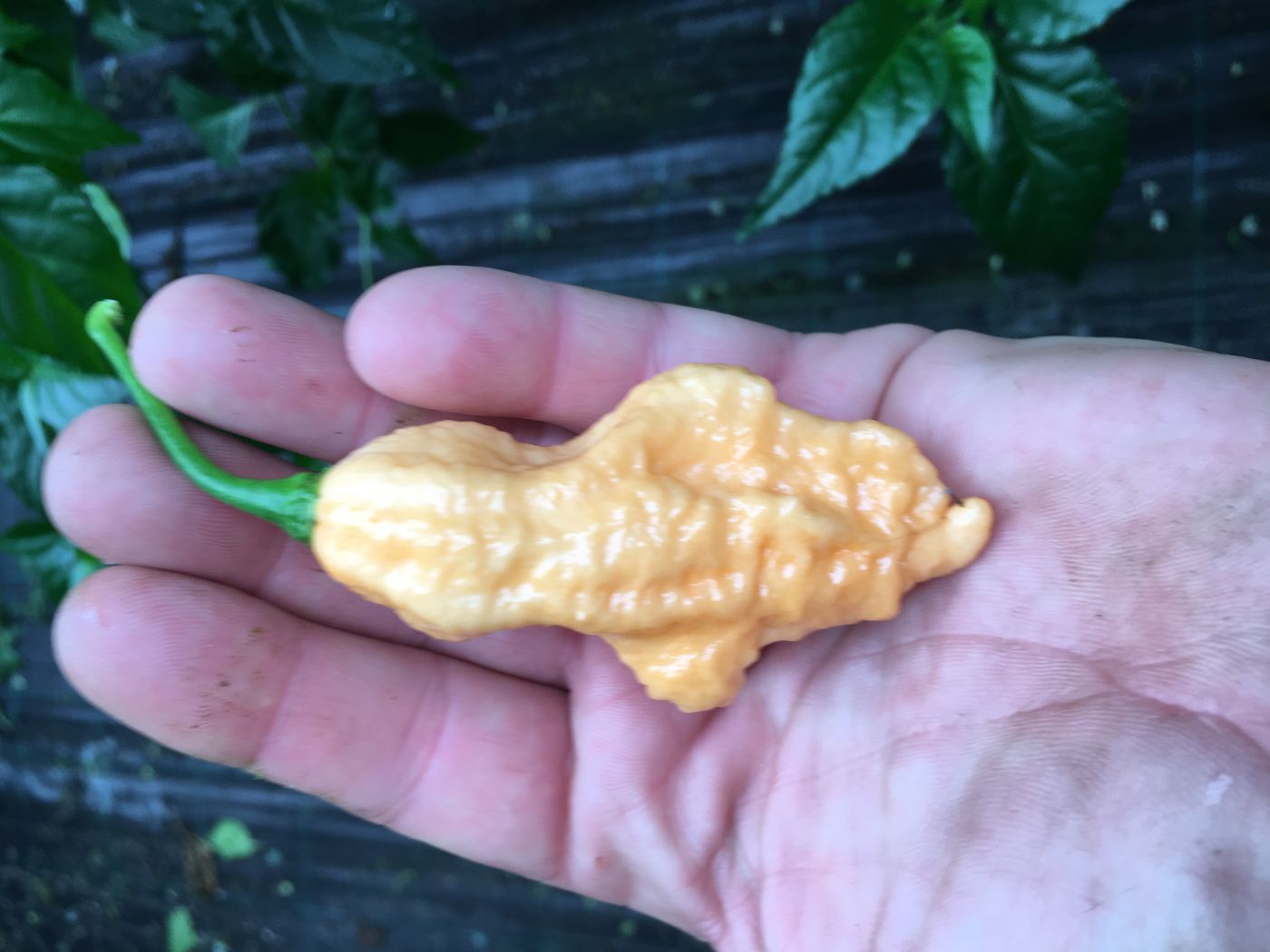 En spektakulært udseende meget velsmagende og meget stærk frugt. Det er en krydsning mellem Bhut Jolokia og en Trinidad Scorpion. Frugterne er ferskenfarvede og meget stærke (10++) de er meget uens, i alle mulige krøllede faconer - fælles for de fleste er dog at de har haler.