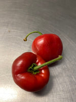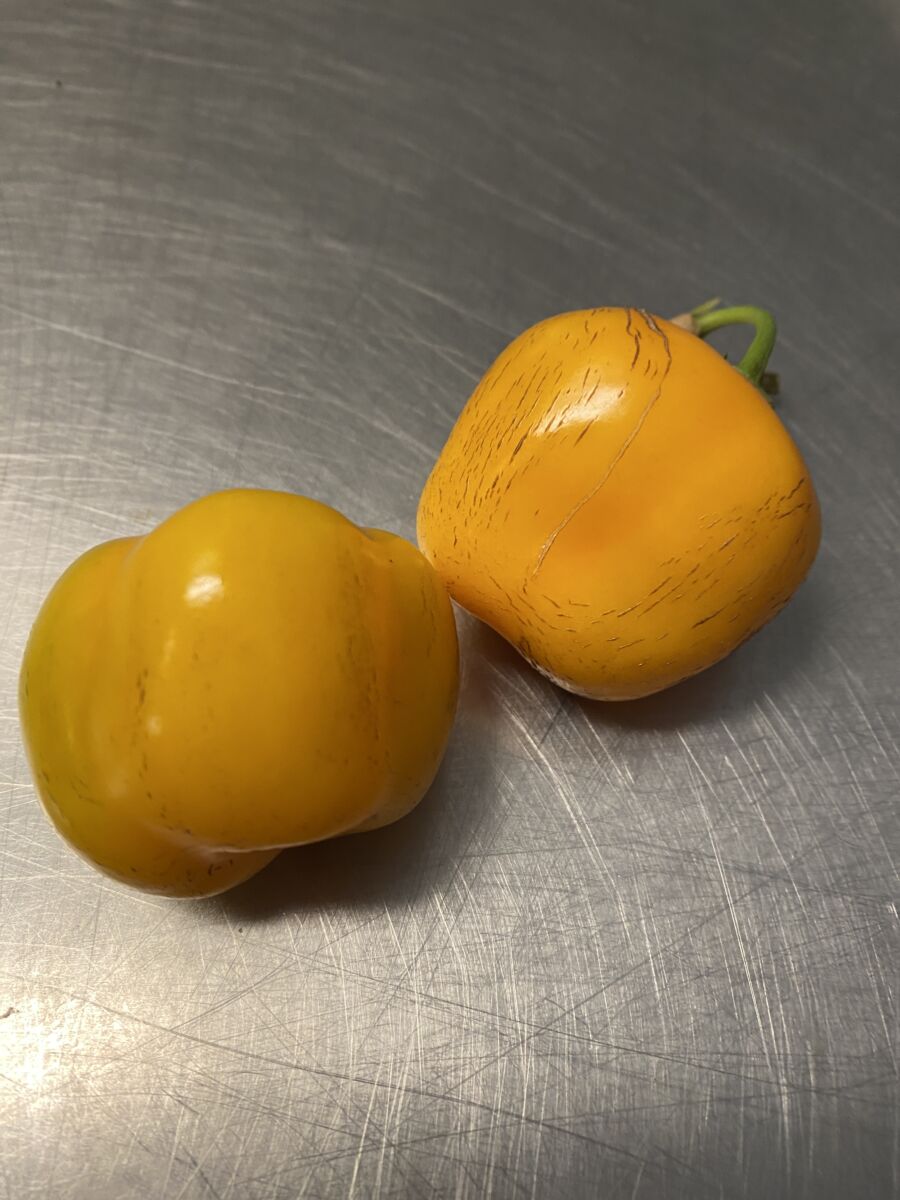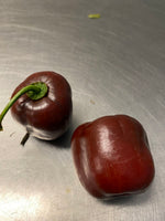 Frugterne er tykkødede og meget saftige - styrken spænder fra hel mild op til omkring 150.000 SHU og så har de i øvrigt sorte frø.