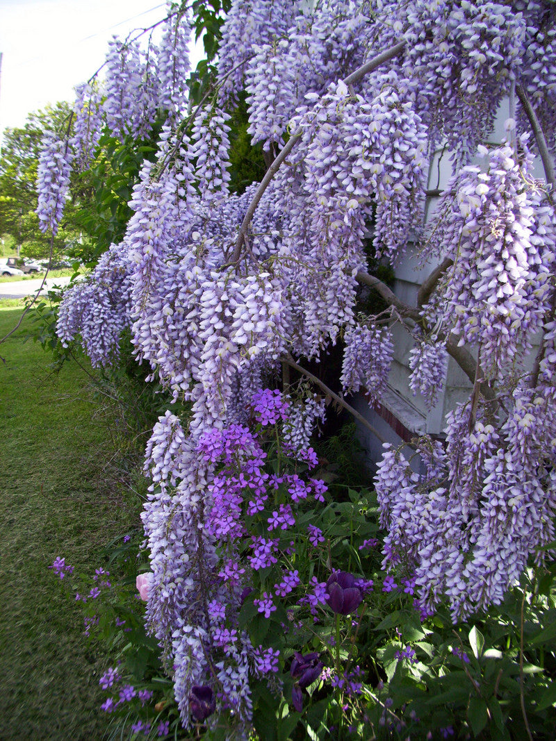 Blomster: Flotte hængende lilla blomster i 15-30 cm lange klaser. Tidspunkt: Maj-juni. Blade: Grønne blade. Væksthøjde (cm): 1000 (klatreplante) Vækstbredde varierer efter forholdene. Optimale jordforhold: Humusrig jord Bemærkninger: Aflange, hængende grå bælge. Sol-halvskygge
