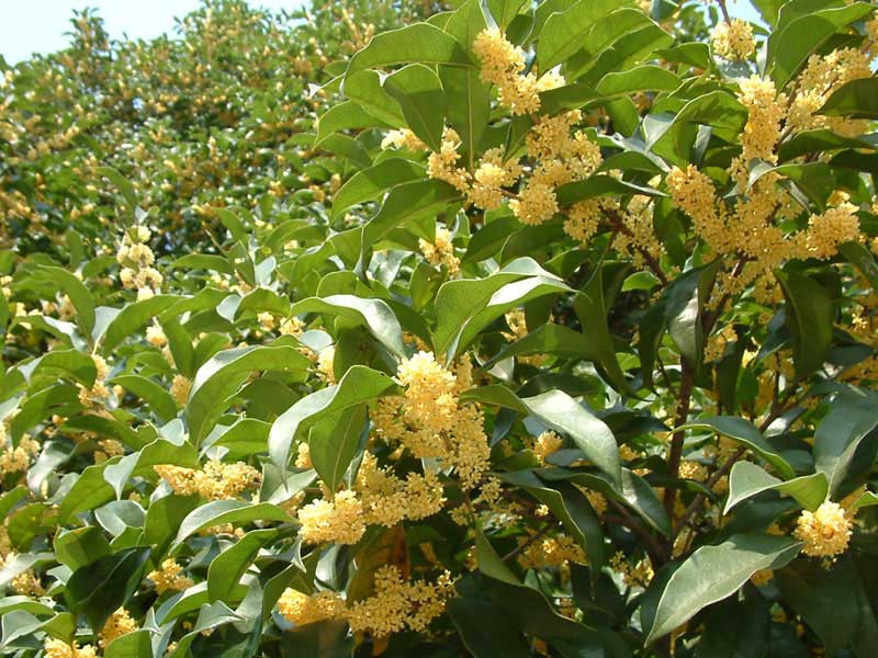 En smuk stedsegrøn busk med meget sødt duftende hvide til sart gule blomster i små klaser. Planten sætter små sort/lilla frugter. Den er hårdfør i Danmark såfremt den plantes på et beskyttet sted. Frugterne bruges til udvinding af olie.