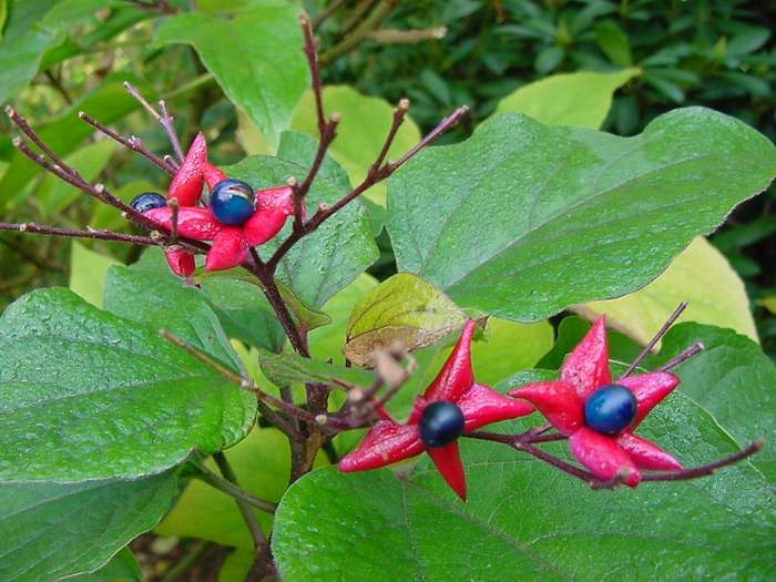 Den sætter frugter som er et kødet bær med 4 frie sten. Farven er først blå men bliver ret hurtig sort.