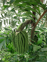 Fiskehalepalme - Caryota mitis. Navnet er afledt af karyotis (karyon betyder nød på græsk), som af Dioscorides blev brugt til denne palme. Slægten, der har 12 arter, er udbredt fra Indien til Australien. De er de eneste palmer med dobbeltfinnede blade. Bladafsnittene er fiskehaleagtige. Skuddene påbegynder først blomstringen, når de har nået deres fulde højde. Da starter de med at sende blomsterstande ud for oven. Blomstringen fortsætter senere ned langs stammen, og når den når jorden, dør stammen. Men da palmen formerer sig ved sideskud, opretholder planten livet. Fiskehalepalmen, er naturligt udbredt i fra Burma til Malay Halvøen samt på Java og Filippinerne. Bliver op til 10 meter højt og trives bedst i fuld sol / halvskygge. Tåler ned til minus 3 grader. 3 frø