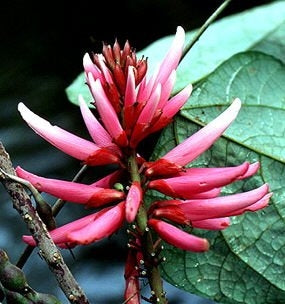 En af de mest imponerende erythrinaer. Dette er en meget sjælden hybrid af hortucultural oprindelse. Den sætter blomster før dens nye blade eller bare som bladene begynder at vise sig. Blomsterne er en smuk intens højrød farve med en snært af pink og hvid. Kronbladene er meget lange og elegante. Blomsterne producerer masser af nektar som tiltrækker masser af insekter og fugle. 6 frø.