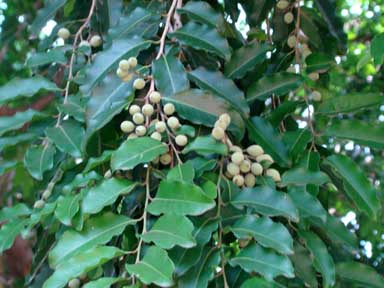 et stedsegrønt træ, med smukt løv. Det sætter bær, som kan bruges som perler. Der kan udvindes en olie fra dem, som anvendes mod solskoldning og brændsår. Det stammer fra Indien og Sri Lanka. Træet er i Danmark meget velegnet som stueplante. minimum 10 frø