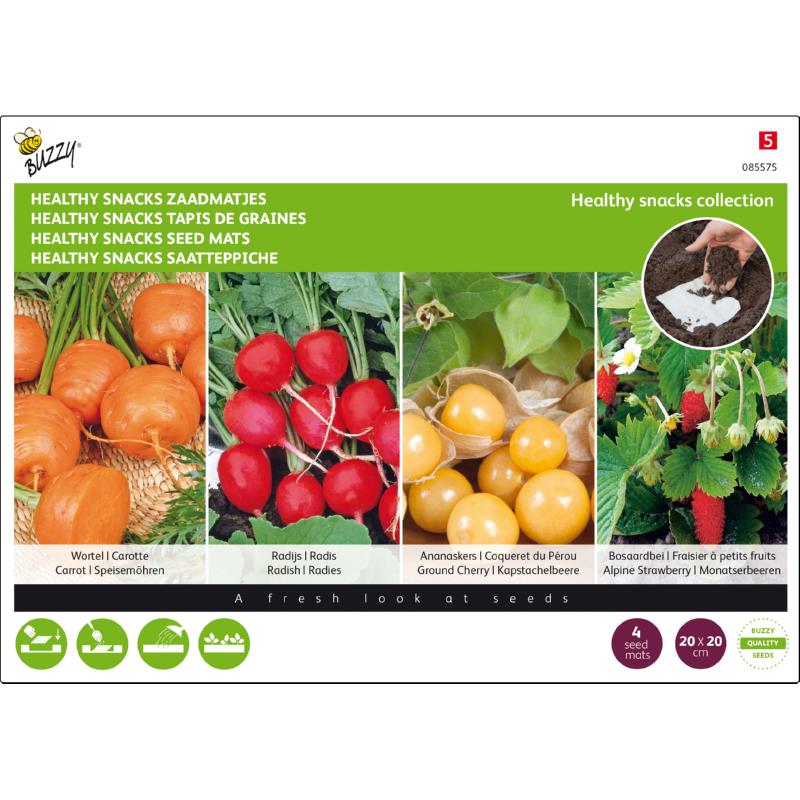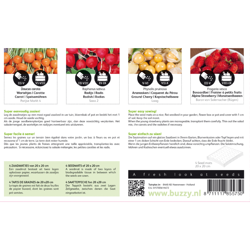 Såmåtte på 20x20 cm med 4 forskellige slags frugt og grøntsager