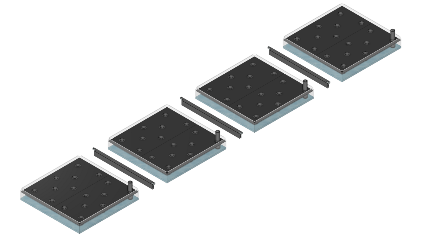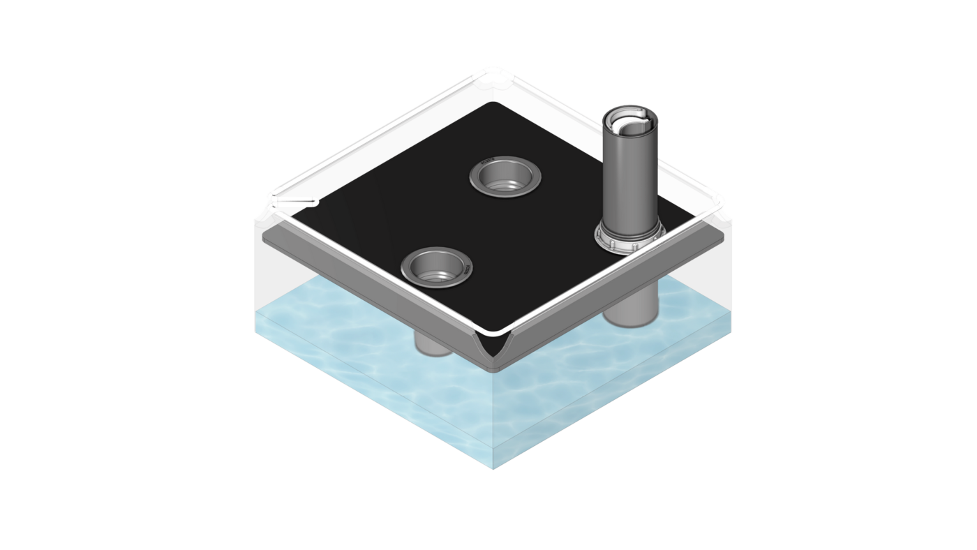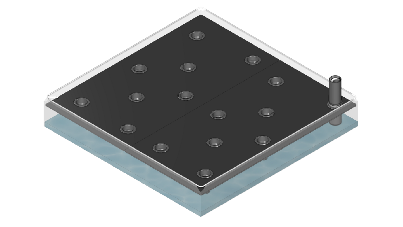 Vandbeholderen er 15 cm høj. Den placeres som en indsats i bunden af bedet. Jorden over er forbundet med vandet via perforerede rør, som fungerer som væger. Vægerne (kapilærvandingsrørene) suger vand op og fugtigheden breder sig ud i hele bedet.