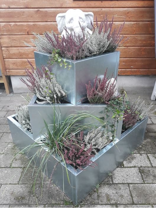 Blomsteropsatsen består af tre niveauer, der giver dimension til haven. En sådan blomsteropsats vil være den perfekte centerpiece i enhver have.