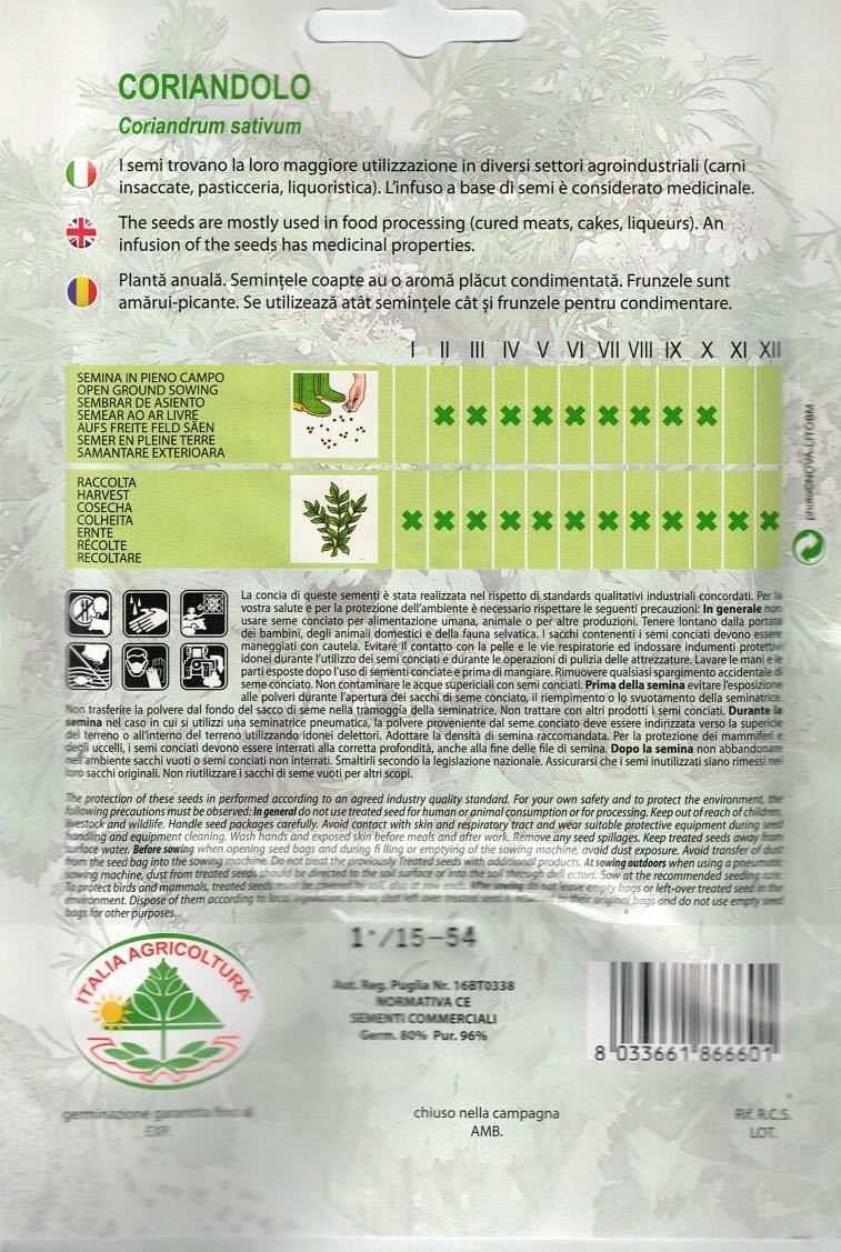 Frisk grøn koriander er en krydderurt, der i Danmark gror på friland i maj til september. I drivhus, vindueskarm o.lign. kan den ofte dyrkes længere.