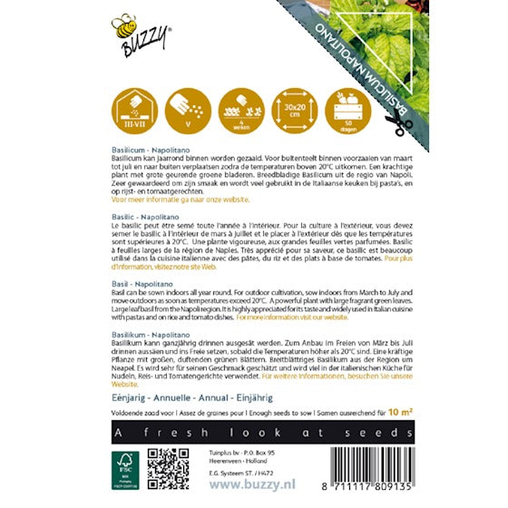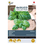 En kraftig plante med store duftende grønne blade. Stor bladbasilikum fra Napoli-regionen. Den er meget værdsat for sin smag og er meget brugt i det italienske køkken med pasta og på ris- og tomatretter.