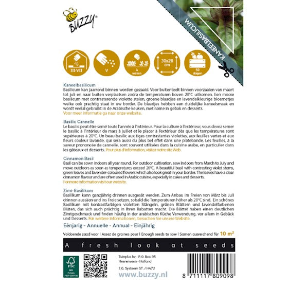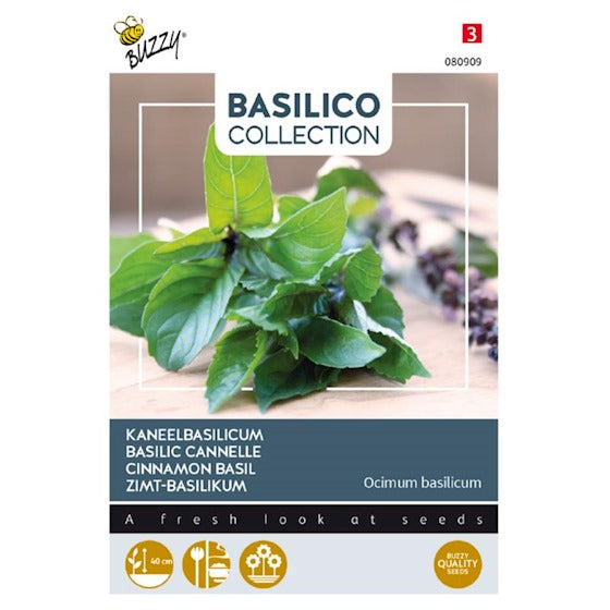 En smuk basilikum med violette stængler, grønne blade og lavendelfarvede blomster. Bladene har en klar kanelsmag og bruges ofte i det arabiske køkken, især i kager og desserter.