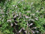 en staude med en opstigende vækst. Stænglerne er sprøde og firkantede. Bladene er modsatte og smalt ægformede med kruset, tandet rand. Begge sider er frisk grønne. Blomstringen sker i juli-oktober, hvor man ser de endestillede, smalle aks, som består af små, næsten regelmæssige blomster i blå, lyserød eller hvid farve. Frugterne er kapsler med små nødder, der spirer villigt under de rette vilkår.