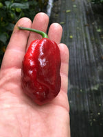 En flot plante der kan blive ganske stor. Sætter desuden et kæmpe udbytte af store flotte rød/lilla frugter. Formodentlig et kryds mellem Bhut Jolokia purple og Trinidad Viper. Super stærke med en kraftig eksotisk frugtagtig aroma og smag. Ekstremt stærk.