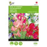Beskrivelse: højt voksende og velduftende ærteblomst med kompakte planter. Blandingen indeholder rosa, røde, blå, violette og hvide nuancer. Trives i næringsrig, veldrænet jord. Vandes og gødes jævnligt. Klip visne blomster væk løbende. Udblød frøene i lunkent vand 1 døgn før såning, så spirer de sikrere.