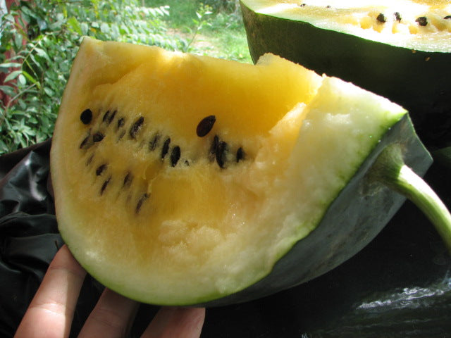 en rigtig lækker art med gult meget sødt kød. Melonen kan veje helt op til 20 kg. Den er bedst egnet til dyrkning i drivhus, men på beskyttet vokseplads kan den sagtens dyrkes på friland. minimum 12 frø