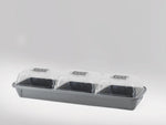 Tre smarte Micro Leaf-bokse af hård plast og i diskret design til dyrkning af grønne blade indendørs året rundt. Låg med ventilation.