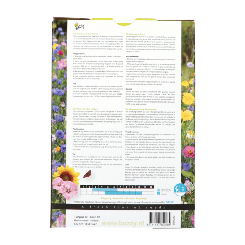 Pakken indeholder tilstrækkeligt frø til ca. 50m2