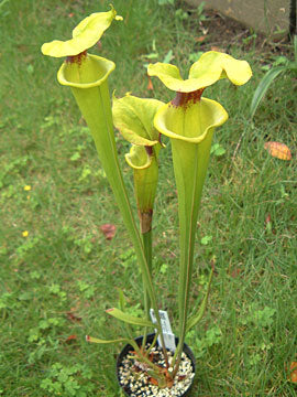 Gul Fluetrompet - Sarracenia Flava Rugelii - kødædende plante. Denne er let dyrket, og ret speciel. den danner trompeter hvoraf der udspringer en blomst - denne bruges af planten til at tiltrække insekter, som så kravler ved i trompeten for at tage nektar - den bliver fanget og planten optager næring fra insektet. ca 10 frø