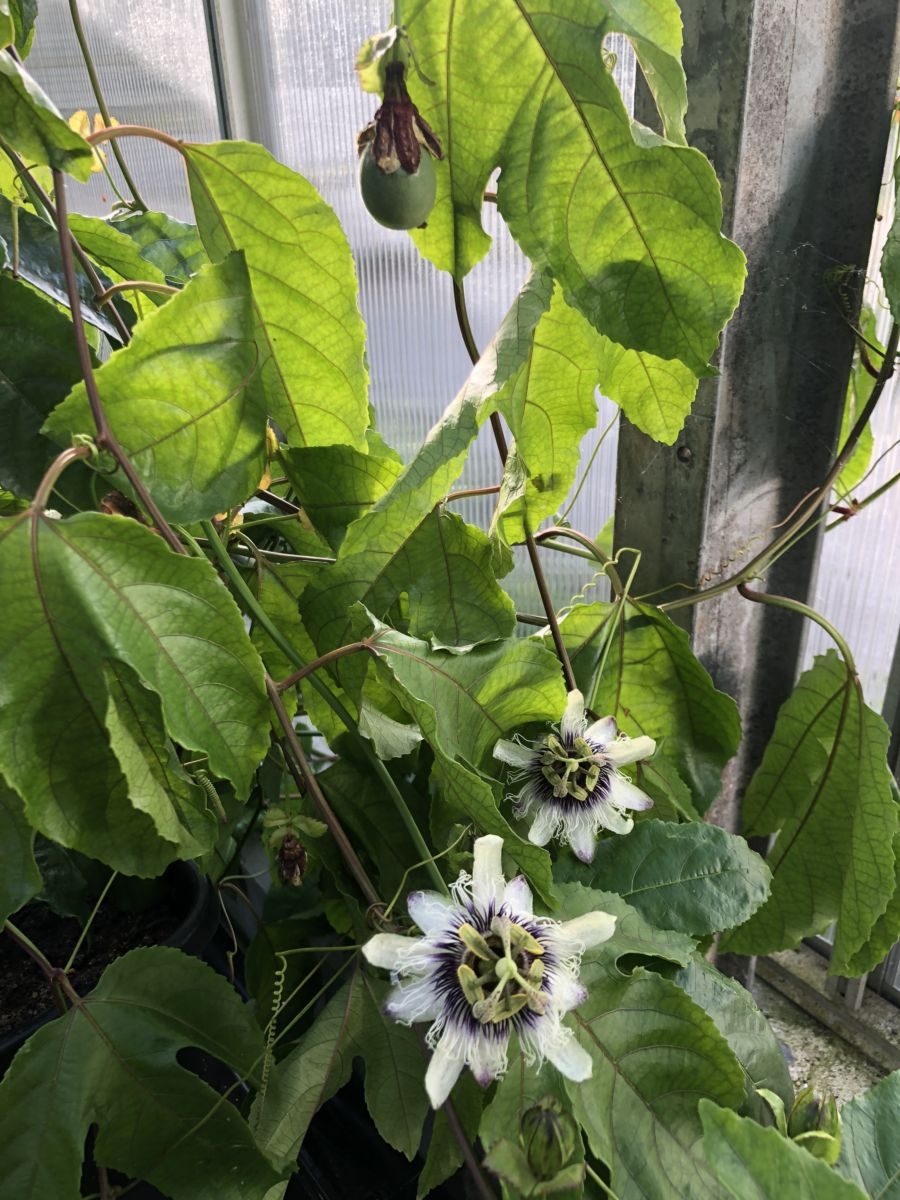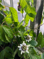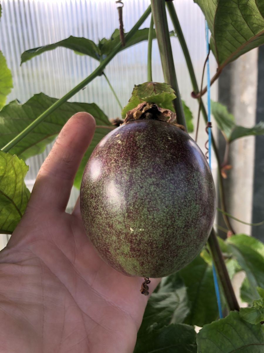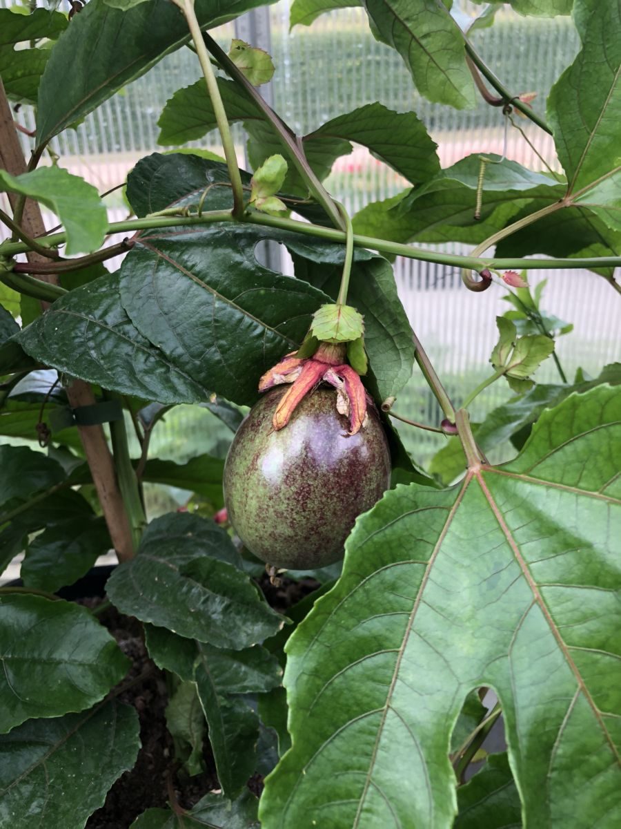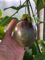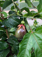 Passionsfrugt - slyng- / klatreplante der sætter lækre spiselige frugter. Denne kultivar er kraftigtvoksende og skal have noget at klatre i. Sætter smukke blomster der ved bestøvning giver store lækre frugter.