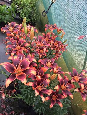 En smuk Asiatisc lilje med store, op til 10 cm, orange blomster med burgundy aftegninger. Planten bliver op til 90 cm høj.
