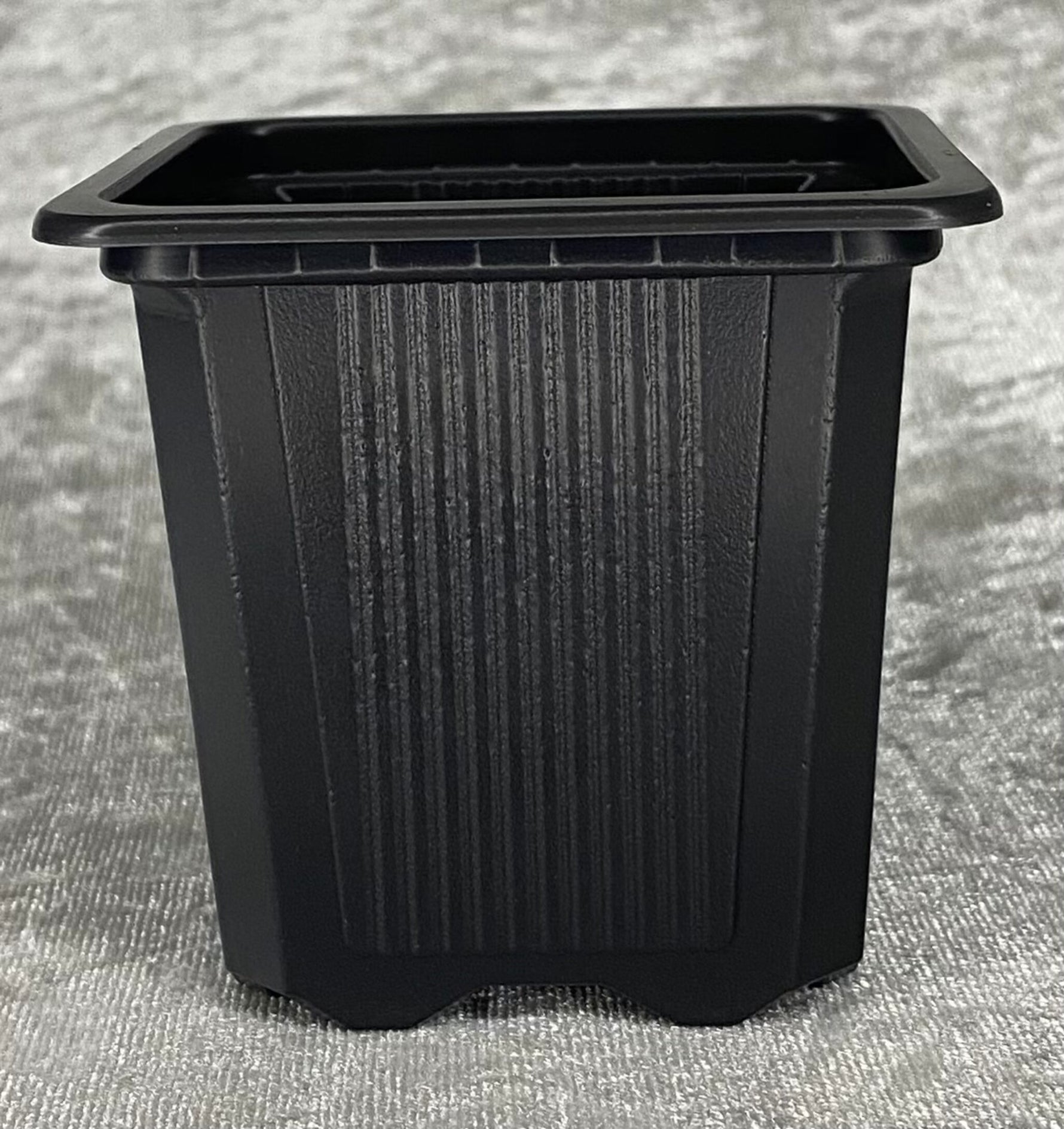 Firkantet potte i sort plast, fra TEKU