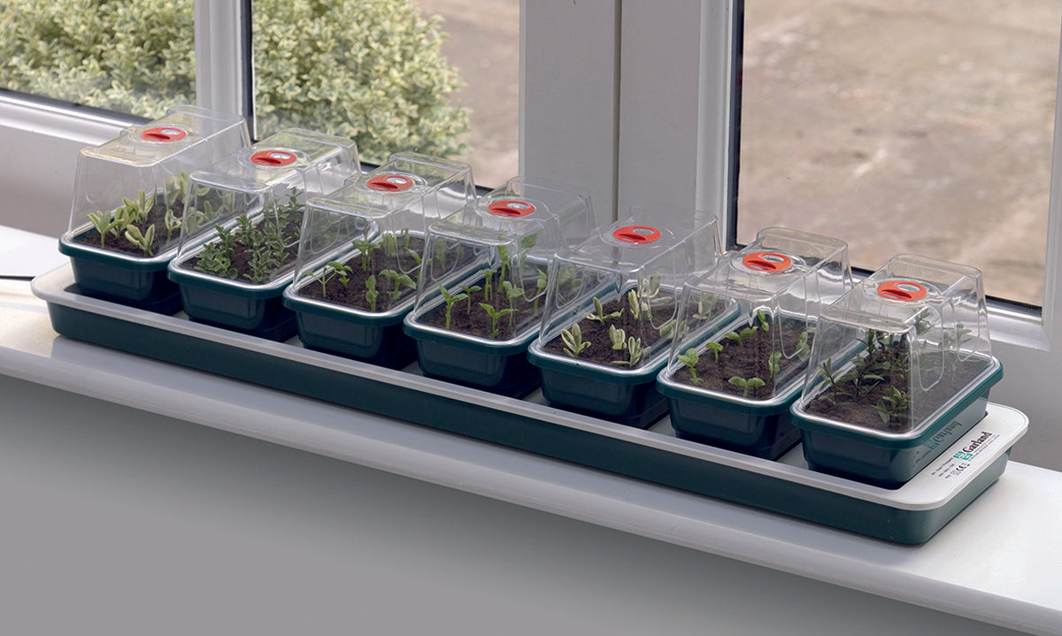 Denne kompakte elektriske spirekasse er en komplet planteskole til vindueskarmen.
