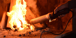 Ingen åben ild eller flammer, men en meget varm luft som sætter gang i dine kul, briketter /bålfadet / pejsen eller brændeovnens træ.
