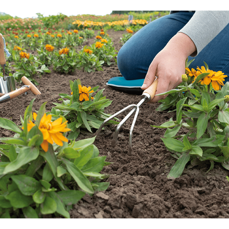 En super fin 3-tands håndrive i rustfri stål med ergonomisk træ håndtag. Den er super let at arbejde med i plantekasser og andre små bede.